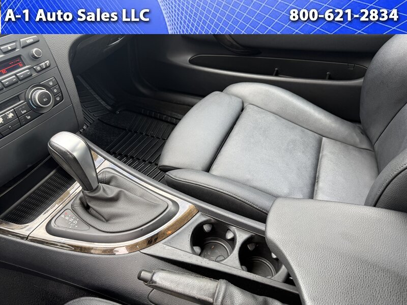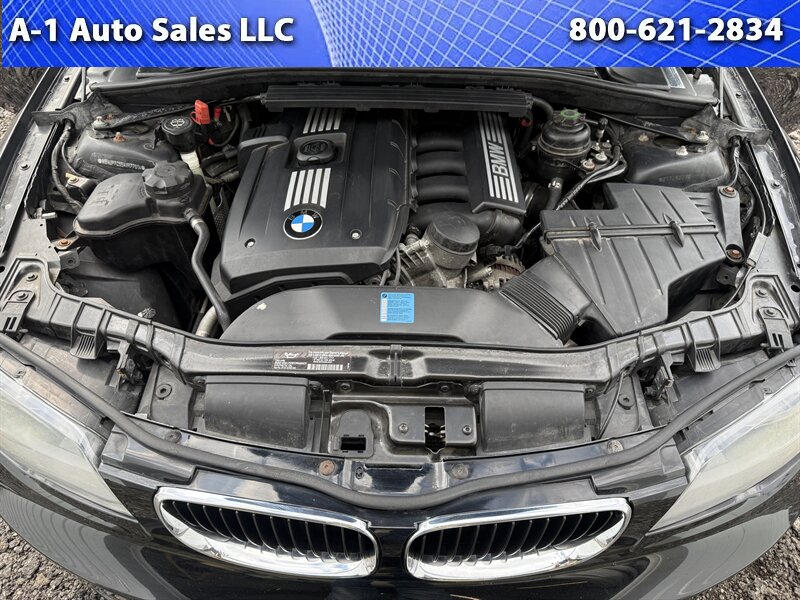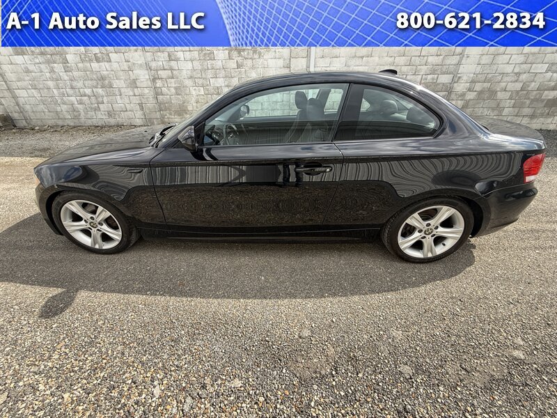 2010 BMW 1 Series 128i — Black Sapphire Metallic exterior, Black leatherette interior. Powered by the naturally aspirated 3.0L inline-6 producing 230 hp and 200 lb-ft of torque, this 128i delivers the characteristic BMW balance of smooth power delivery and rear-wheel-drive dynamics. Factory drivetrain packaging paired a 6-speed manual as standard, with a 6-speed automatic Steptronic available from the factory.